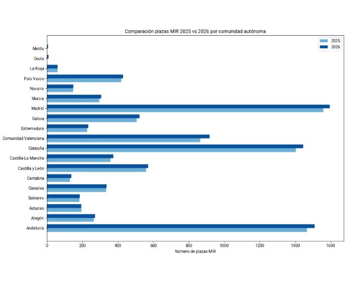 - Año 2026: El número de plazas MIR alcanza su máximo histórico (9.276 plazas).